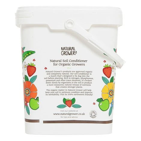 Natural Grower is an approved organic plant based fertiliser. Approved by the Soil Association and the Vegan Society. The by-product of a renewable energy plant producing electricity for the national grid. The plant feed can be mixed into the soil or compost before planting, or used on the surface as a top dressing. It is excellent at retaining water when used as a mulch on the surface or when mixed in to the soil. This reduces your watering requirements through the dry summer months. The health and structure of the soil and compost is greatly improved, meaning stronger and healthier plants. Perfect for mixing into grow bags, hanging baskets, plant pots, vegetable and flower beds, and when planting trees and roses. Rich in nitrogen, phosphorous, potassium and other trace elements, it’s broken down gradually by organisms in the soil as a long-term, slow release fertiliser, with an NPK ratio of: 4.1:2.2:3. It is also PH neutral. Sustainable, British, chemical free, eco-friendly and safe for wildlife.