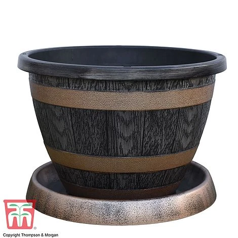A stylish and classic look for our ingenious Tower Pot system. This wooden barrel effect Tower Pot will fit in to a traditional planting scheme seamlessly. The supportive frame is specially designed to train plants into pillars of colour on your patio. Easy to assemble, the sturdy lattice frame is ideal for all types of climbing plants, including climbing petunias, climbing geraniums and sweet peas. Simply guide the stems on to the Tower Potâ„¢ frame and secure with soft twine. We recommend that you wear gardening gloves when removing old plants from the frame to protect your hands.